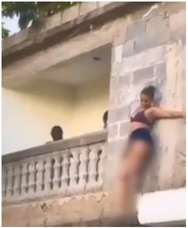 A video online captures the moment a side chick to a huge risk to hide outside the balcony fence in order to evade her sugar daddy’s wife.