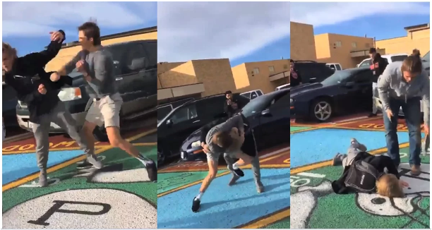 The student even lifts his friend and slams him on the ground, continuing to punch him as he lies there.