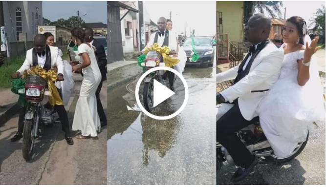 A newly married couple has left Nigerians in awe as photos emerged of them riding on a motorcycle after their wedding in Port Harcourt.