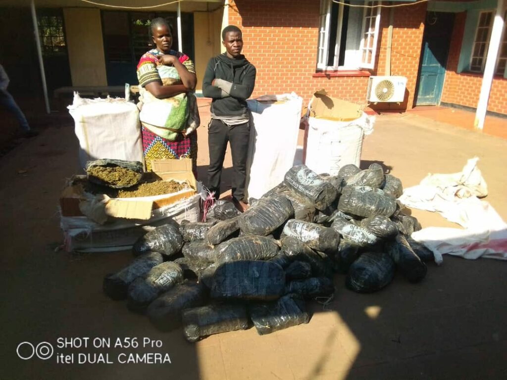 Police in Lilongwe are keeping in custody a 23-year-old motorcycle taxi operator and a 30-year-old woman arrested on Thursday, June 1, 2023 over illegal possession of three bags and five cartons of Indian Hemp, which they allegedly wanted to send to Blantyre through a courier service operator.