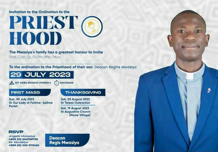 While Innocent Scania Chimlambe wrote: “Deacon Regis Mwasiya has requested not to be ordained (tomorrow) on Saturday, 29th July, for he still wants to continue discerning his vocation to priesthood,” says Fr. Mwakhwawa.
