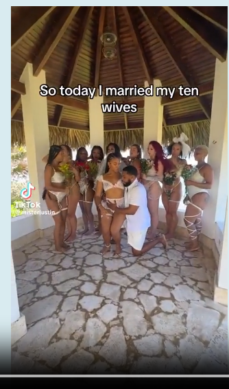 A young African American man got married to ten different women in one day, and a video of the wedding went viral on social media.