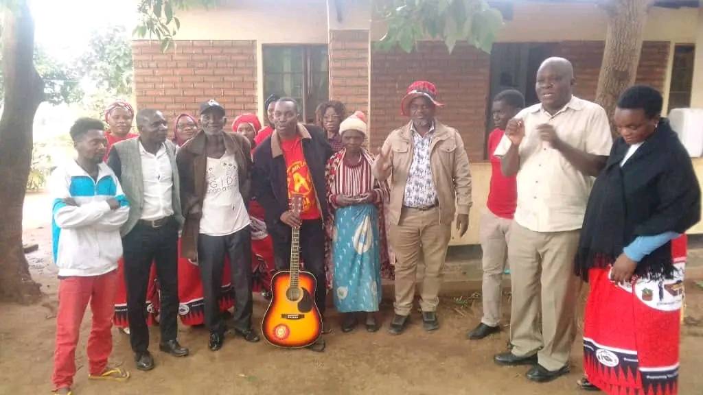 Chiwanja Cha Ayao members cheer musician Giddes Chalamanda
