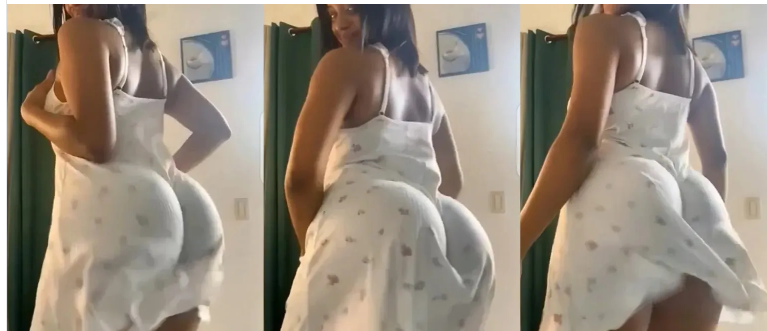 A viral video features a stunning ebony lady conversing with her pet while showcasing her exquisite assets in a white short.