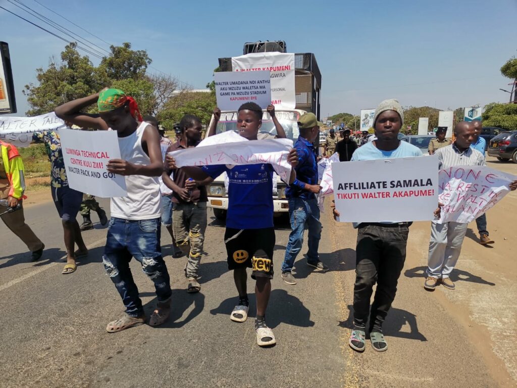 Soccer fans against Walter Nyamilandu, holds peaceful protest in Mzuzu