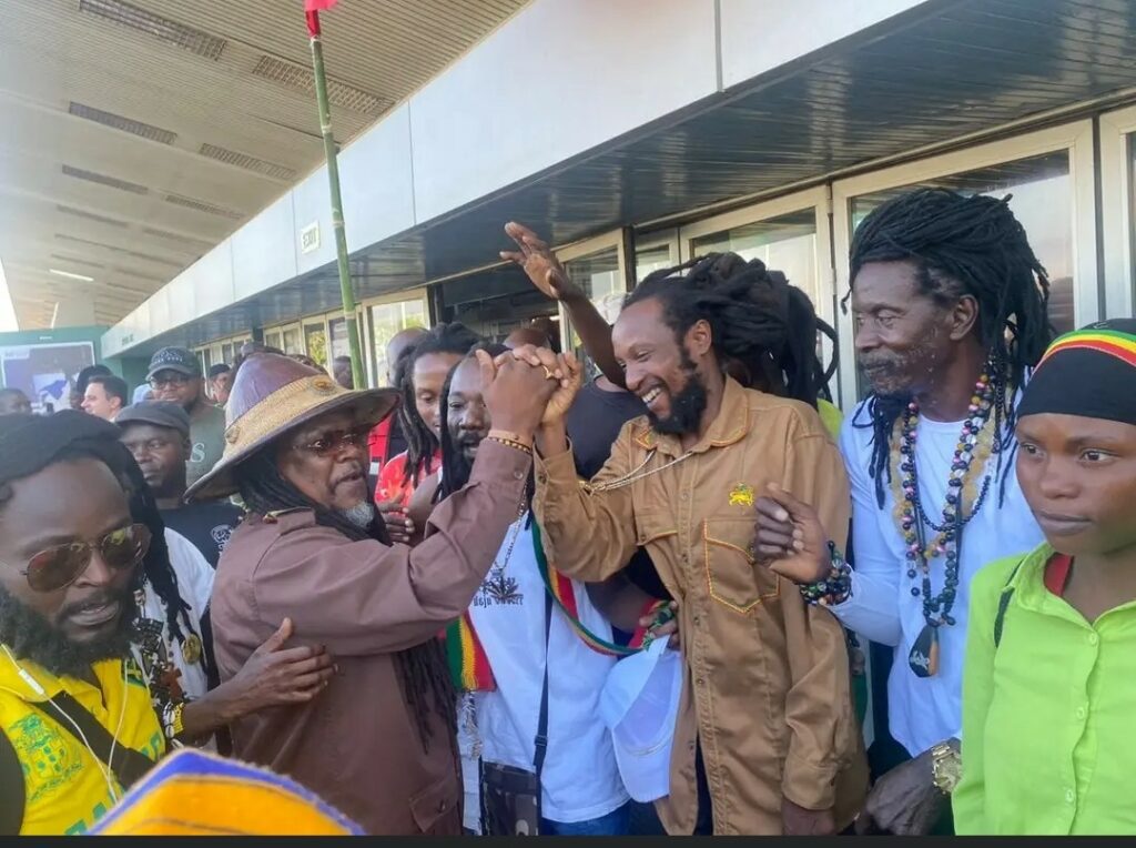 The reggae star was welcomed by Rastafarian family who gathered at Kamuzu international Airport in large numbers.