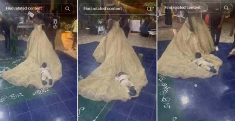 DRAMA|| Kid Sleeps on Bride’s Flowing Dress While She Dances (Watch Video)