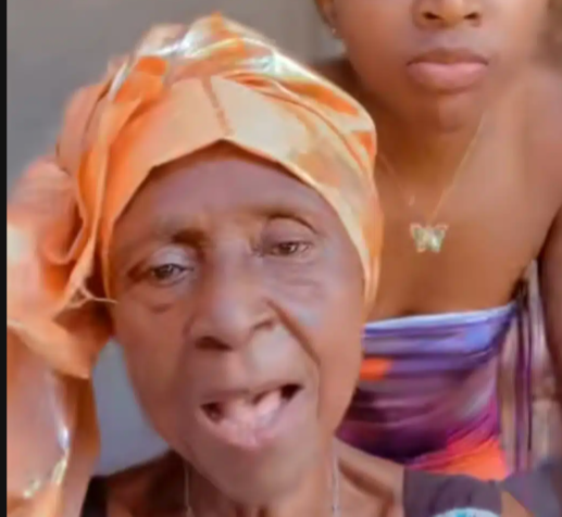 The video, captioned ‘Hide your man,’ captures the playful interaction between the elderly lady and a younger woman believed to be her daughter.