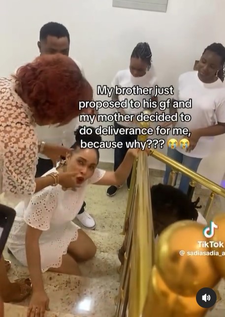 A TikTok user has shared a video of her mother conducting a deliverance on her after her brother proposed to his girlfriend.