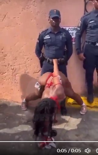 The social media platform X is flooded with a video clip showing a lady twerking in her underwear in front of a police officer in public.