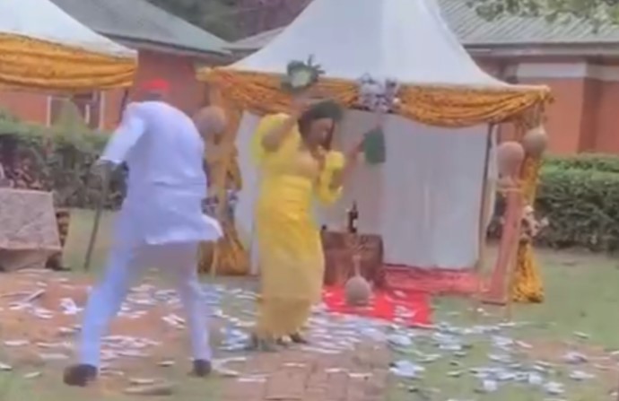 A Nigerian Igbo man was captured on video delivering a hot slap to his wife for stepping on his shoe while dancing at a wedding.