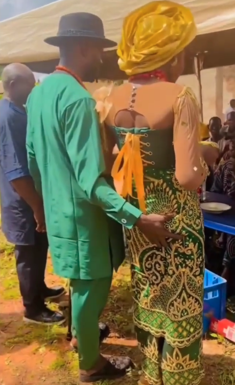 Watch video as L!bidinous groom is seen squeezing wife’s NYASH during their wedding (Video)