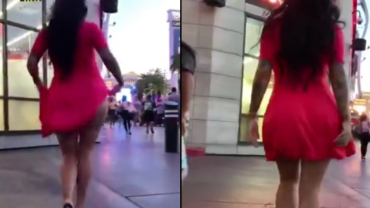 In the trending video, a woman dressed in pink decided to give onlookers an unexpected view. As she walked down the street, she lifted her dress, revealing what she was wearing underneath. This action certainly caught the attention of passersby, particularly the men who couldn’t help but gaze.