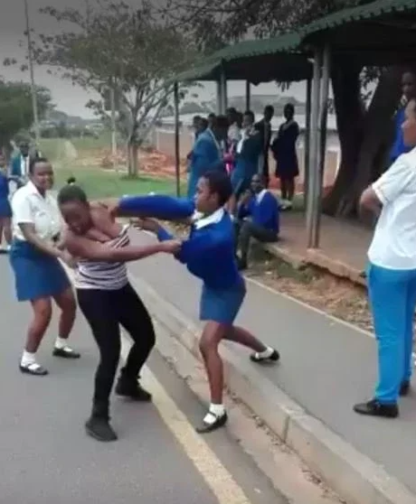 The clip shows the way the teenage side chick beats the Zimbabwean wife who confronted her for sleeping with her husband in a blue black manner.