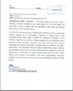 The Malawi Prison Service has interdicted Emmanuel Chiganda for transacting with a prisoner to traffic cellphones into prison. This follows […]