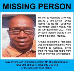 Information reaching faceofmalawi indicates that a taxi driver identified as Philip Mzumara is missing in Mzuzu. Mzumara’s relatives have confirmed […]