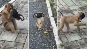 A video has gone viral on social media where a monkey, wandering on the streets, wears a mask after finding […]