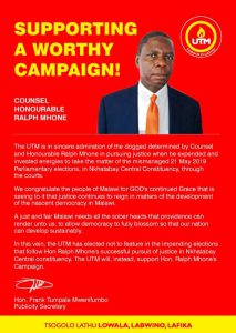 United Transformation Movement (UTM) has pulled out of the impending court sanctioned Nkhata-Bay Central by-elections. UTM Publicity Secretary Frank Tumpale […]