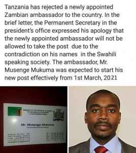 Zambian Diplomat Musenge Mukuma has been Rejected By Magufuli Because His Names Are Insults In Swahili. The first name Musenge […]
