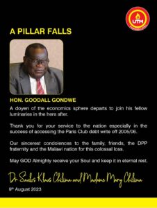 As condolence messages continue to pour in on the death of former Minister of Finance and Economic Development Goodall Gondwe, […]