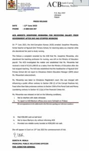The Anti-Corruption Bureau (ACB) has taken legal action against a former teacher at Nguludi Girls Primary School in Chiradzulu. The […]