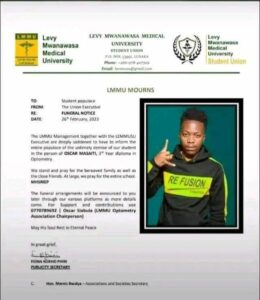 Tragedy struck Levy Mwanawasa Medical University (LMMU) on Saturday night when a third-year medical student, Oscar Masaiti, was brutally attacked […]