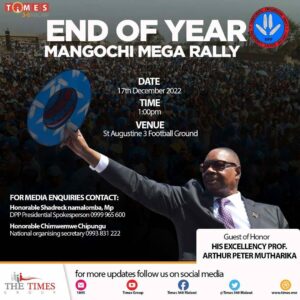The opposition Democratic Progressive Party (DPP) led by former President Peter Mutharika will today hold end of year mega rally […]