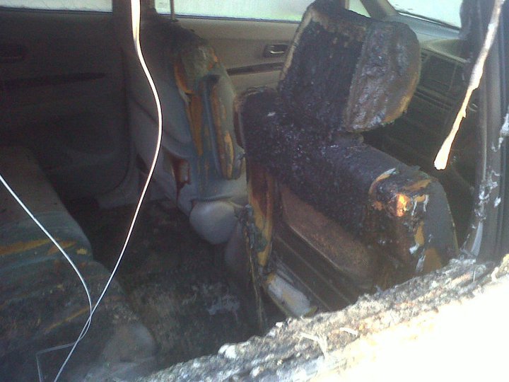 - After smashing a car on Sun they have torched a #Zodiak Broadcasting Station car today Pic BY @austinmadinga