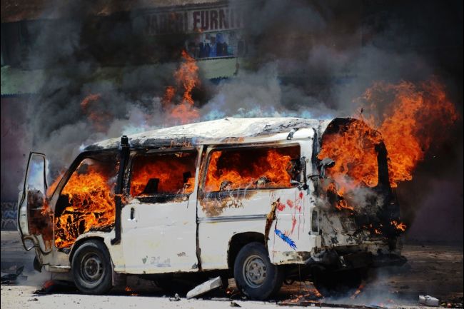 MINIBUS CATCHES FIRE AT BLANTYRE MARKET STAGE