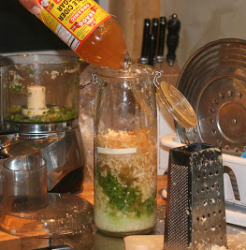3. Pour in some apple cider vinegar and fill it to the top. It is best if 2/3 of the jar consist of dry ingredients, and fill in the rest with vinegar.