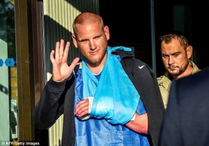 In the attack, El-Khazzani pulled out a box cutter knife, slashed Mr Stone in the neck and ‘almost cut his thumb off’ in the melee.