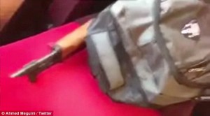 ‘He says he found this Kalashnikov automatic rifle, his Luger pistol and a mobile phone in a suitcase, which had been left in a park close to the Brussels railway station in Belgium where he slept rough,’ his lawyer, who has not been named told Le Parisien.