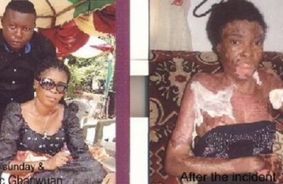 Isaac Gharwuan who is a police man in Nigeria set on fire his own wife Mary Sunday and the reason to his actions are yet to be known.