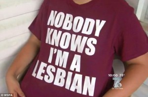 The student claimed that when school staff noticed the T-shirt, which says ‘Nobody Knows I’m a Lesbian’ in large capital letters across the front, she was sent to the front office.