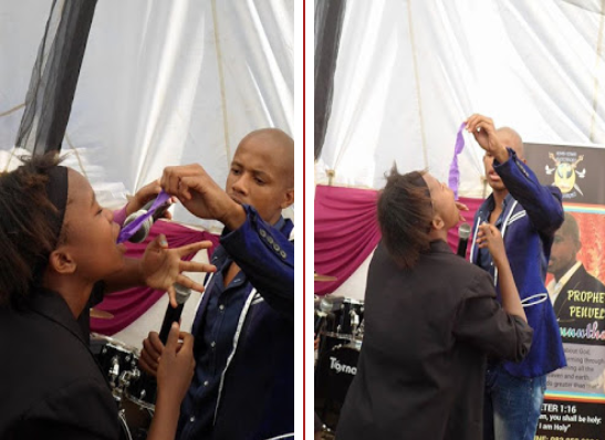 The same Pastor Penuel of End time ministries in South Africa, who recently fed his members with live snakes, have also asked them, mostly women, to pull off their bras, pants, including their underwears and eat them. He even rode on the men like donkeys. Speechless.