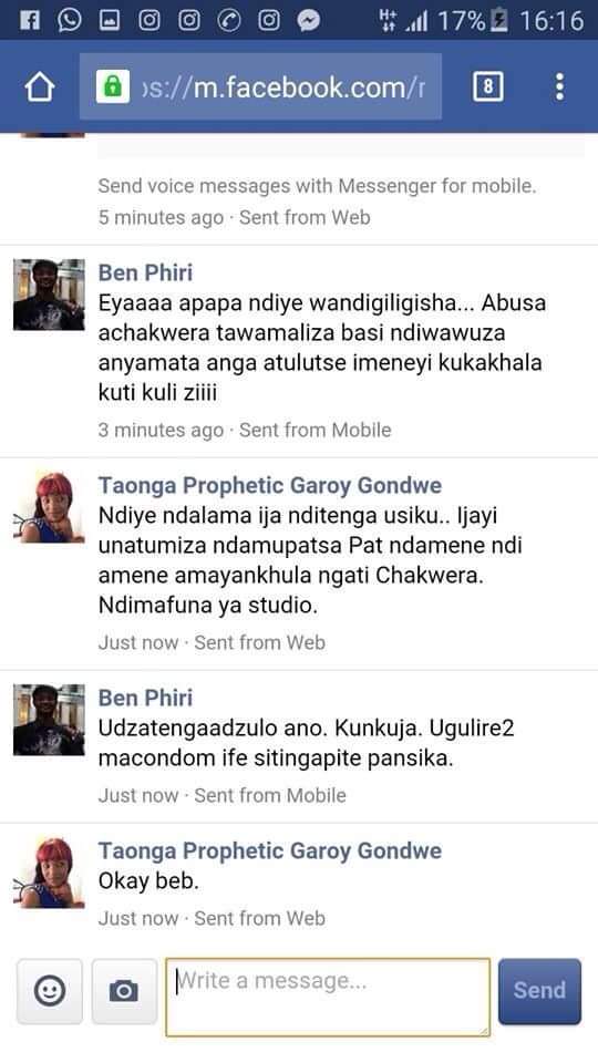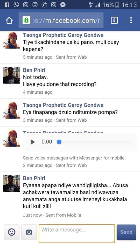 Ben Phiri ends the conversation very satisfied with the Jezebel’s work when she shares a clip of the purported conversation.