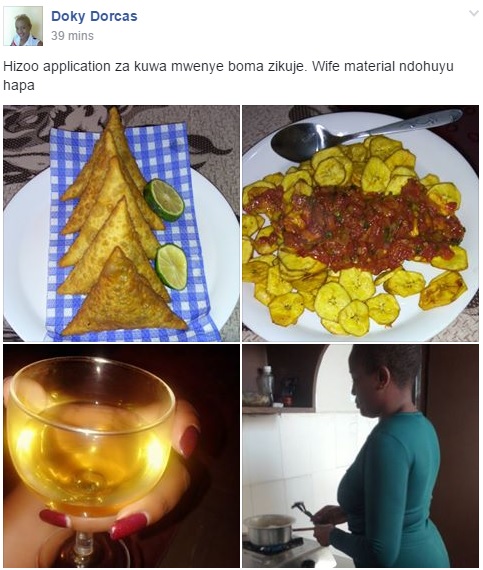 See what she posted on Facebook in Swahili language, says she can make a good wife because she knows how to cook!