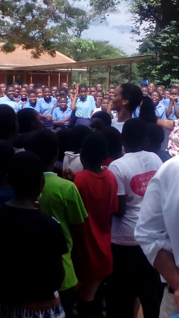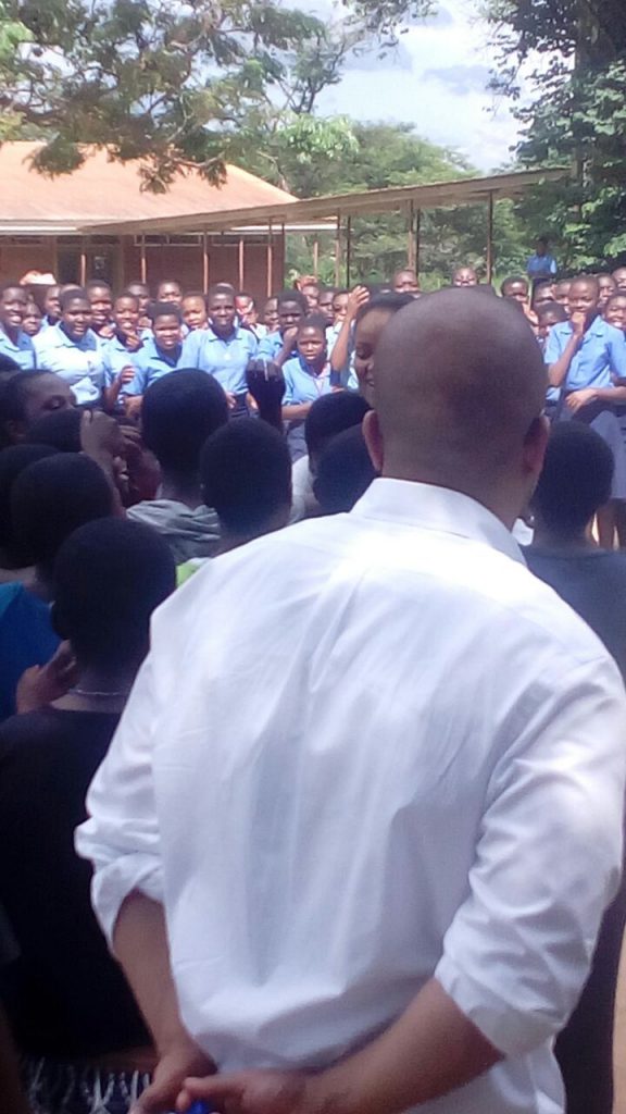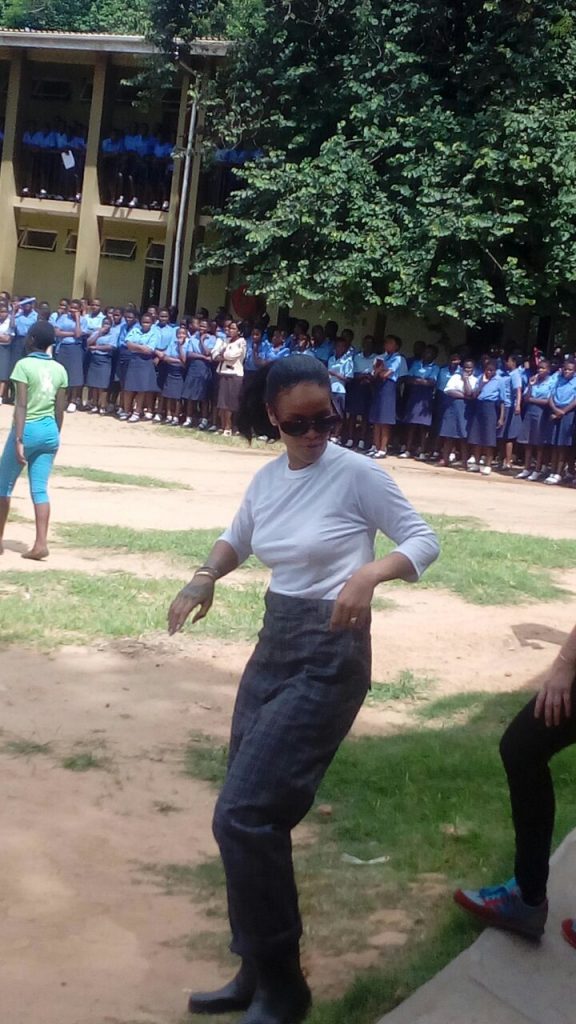 According to RihannaDaily.com tweeted whiling capturing her with some students in one of girls secondary schools in the country.