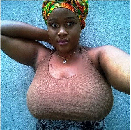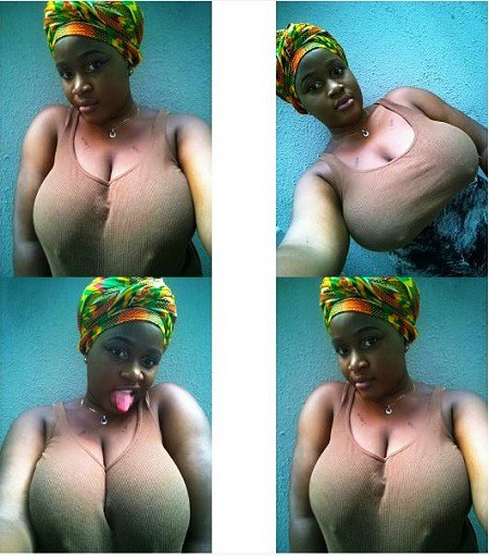 This Vickie Ama, a young Ghanaian girl who has realized that her gigantic boobs are her selling point.