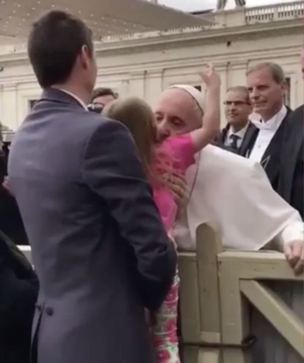 He uploaded the video to twitter at 11am this morning with the caption: “Took my Goddaughter to meet the pope. She stole his hat!”