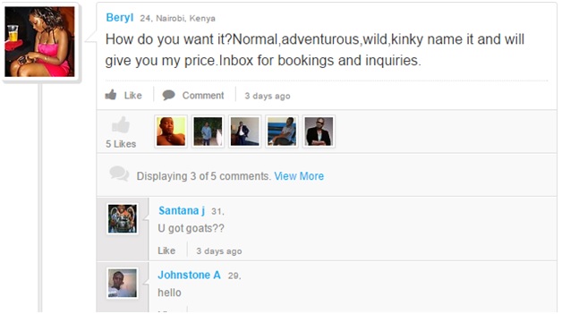 Pay me Sh5000 (K35000) per hour for s*x-Kenyan lady reaches her potential clients on Facebook