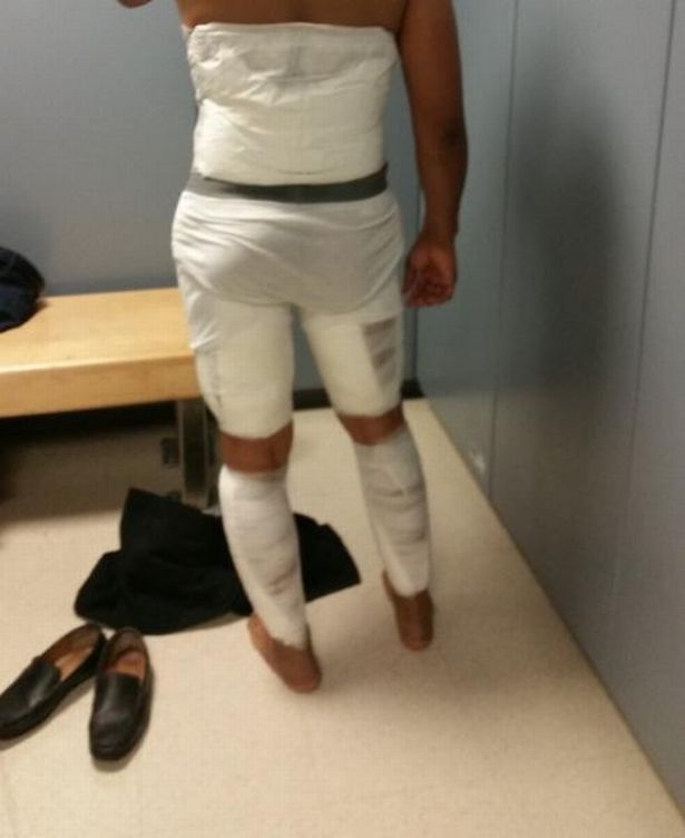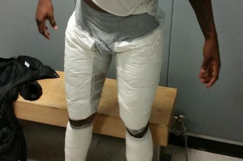 Two Airline Passengers Caught Smuggling Cocaine, Strapped To Their Legs Underneath Clothes (pictures)