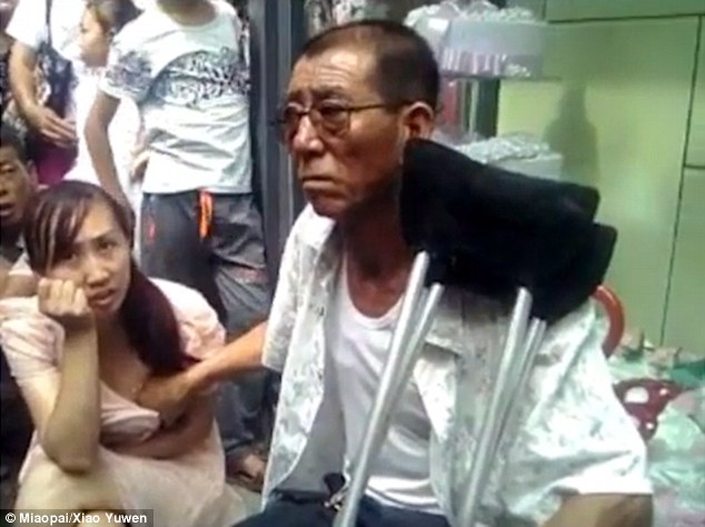 The man, who is believed to be a fortune teller, held a pair of crutches in the other hand.