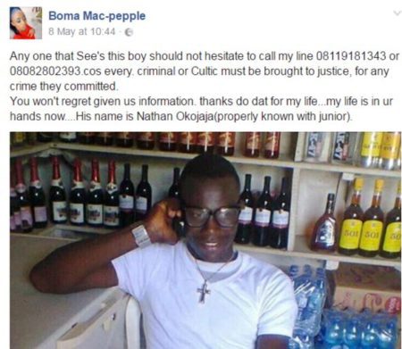 It was learnt that before stabbing the victim, Mac-Pepple, who claims to be a student of the University of Lagos on her Facebook profile posted that Okojaja is a criminal and a cultist who has been declared wanted.