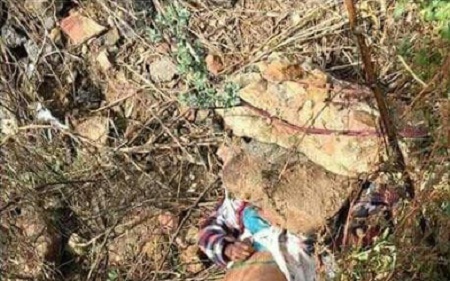 She was discovered by community members who were cutting down tall grass in a field near a railway line. Her trousers and underwear had been pulled down. Large rocks had been thrown onto her head.