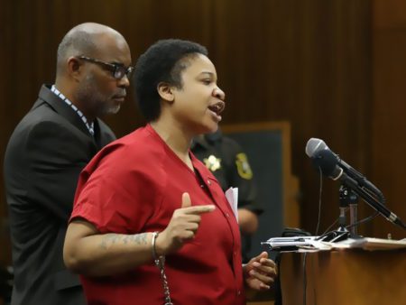 A 36-year-old Detroit mother, Mitchelle Blair, accused of killing two of her children appeared in court on Monday where she pleaded guilty then went ahead to boldly say that she is not sorry for killing them.