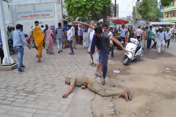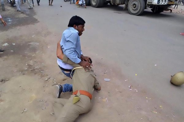 One police officer was kicked and punched unconscious after he found himself isolated and surrounded by demonstrators. Violence broke out after news spread that a student named Akansha, believed to be 17 or 18 years old, had been raped in the hospital’s intensive care unit.