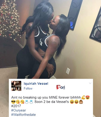 The above two women identified as Iquiriah Vessel and her fiancee, Lykeisha, are apparently serious about taking their seemingly awkward lesbian romantic relationship to the next level.