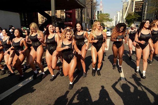 An eye-poping line up of scantily-clad hopefuls showed off their enviable assets on one of the city’s busiest streets – Avenida Paulista.