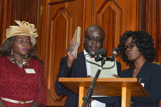The swearing in ceremony was administered by High Court Deputy Registrar Agnes Patemba.